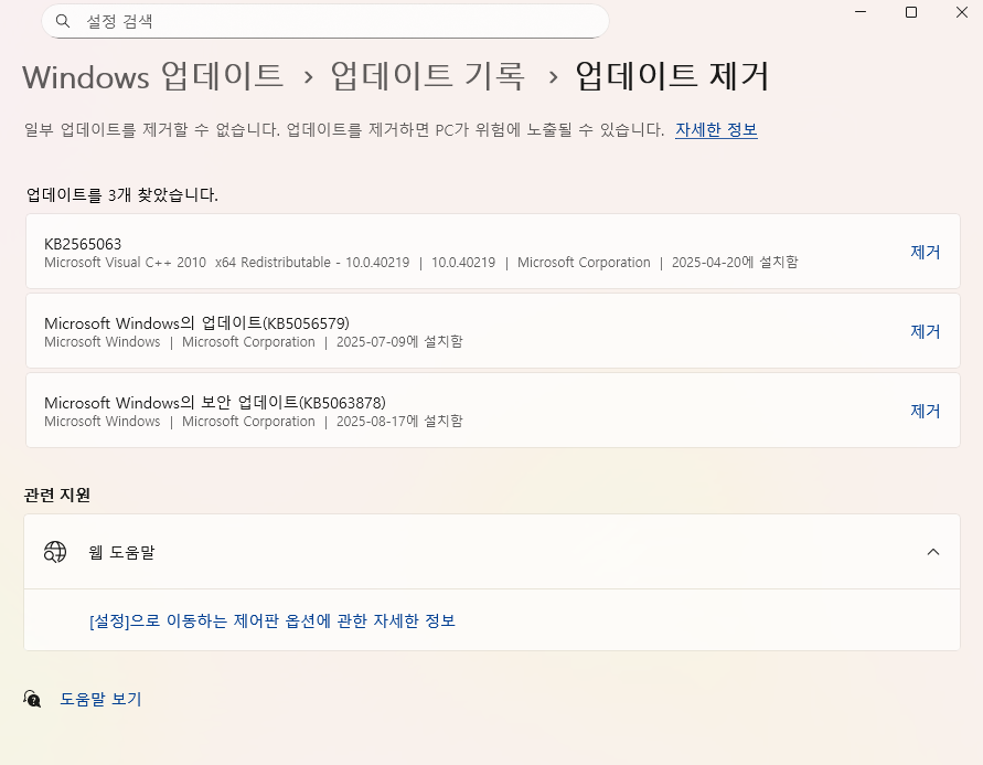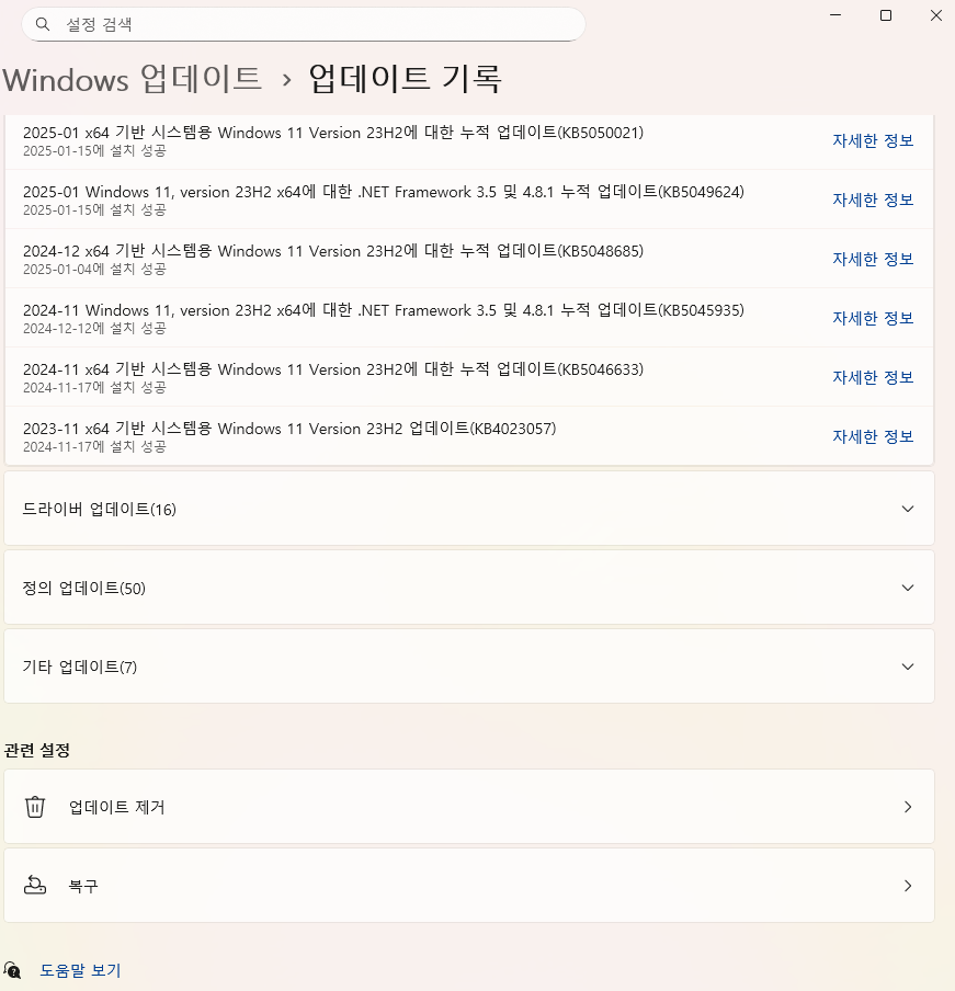 확인해보니 내 pc 에서도 해당 업데이트가 되어있었다.