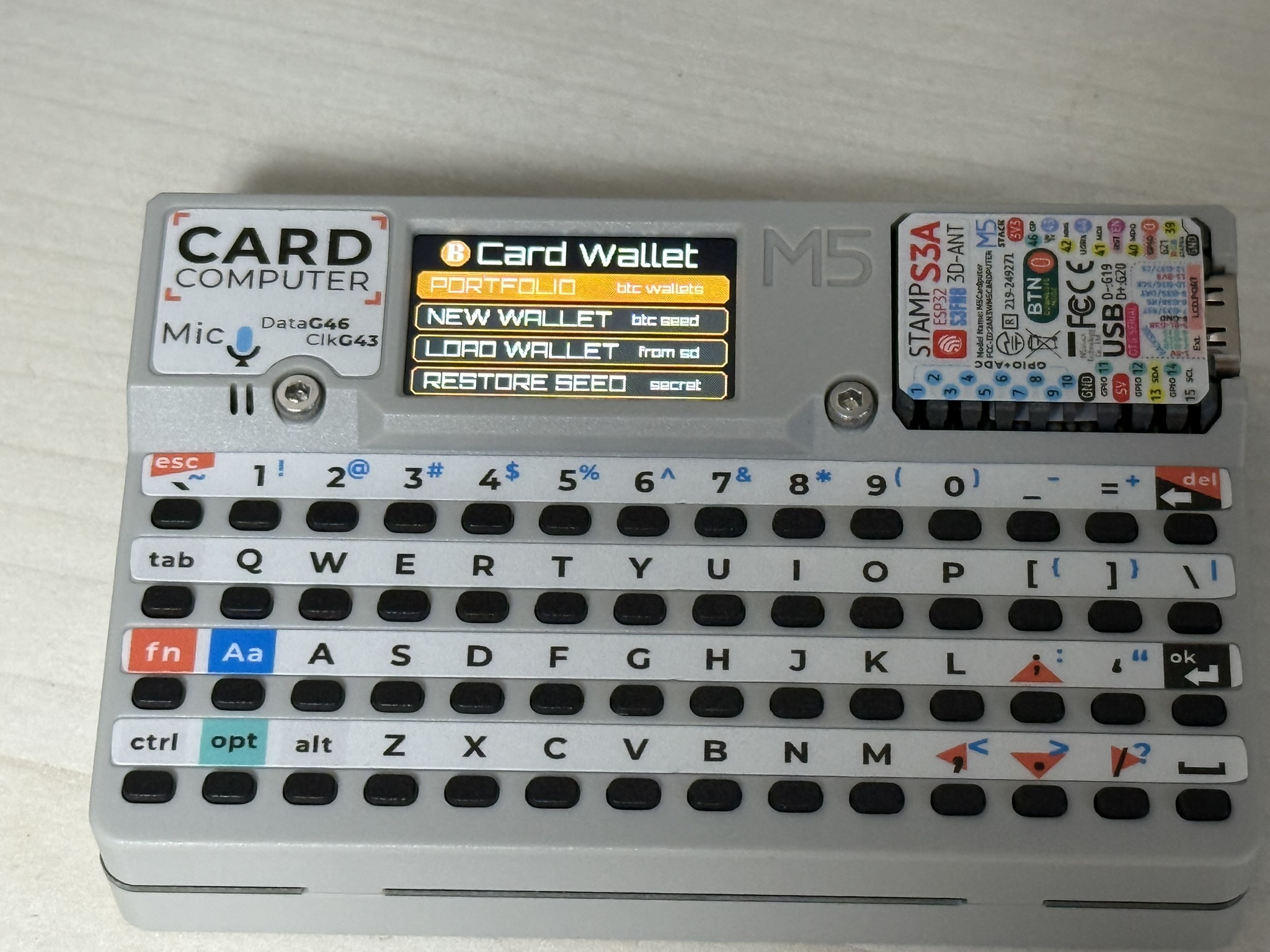 카드퓨터라는 esp32 3s 기반의 카드모양 컴퓨터에 비트코인 하드월렛을 설치할 수 있었다.
