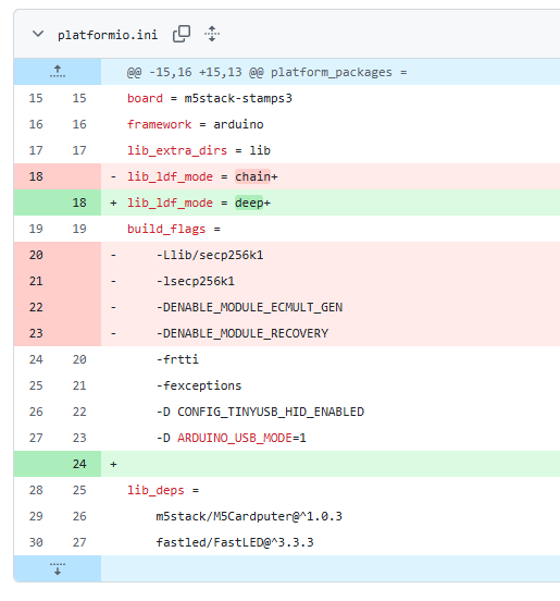 그리고 기존 build_flags의 내용중 위의 서브모듈 경로를 지우라고 한다. 그러면 자동으로 필요한 것들을 잡고 빌드한다고 한다.
