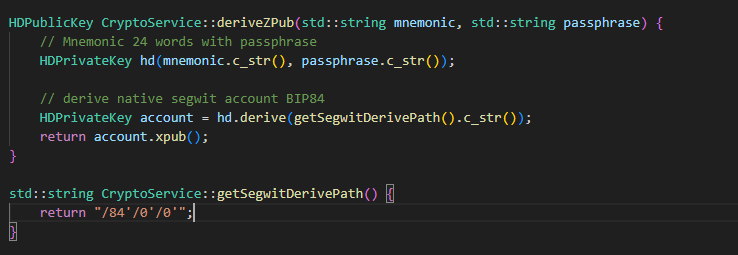 저번에 블루월렛 등록에 맞게 DerivePath를 리턴하는 함수 안의 텍스트를 수정했었는데 이게 내부에서도 사용한다.