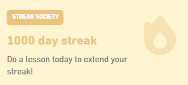 평소와 같이 듀오링고를 들어갔는데 어제 1000일을 채웠다는 것을 알았다.