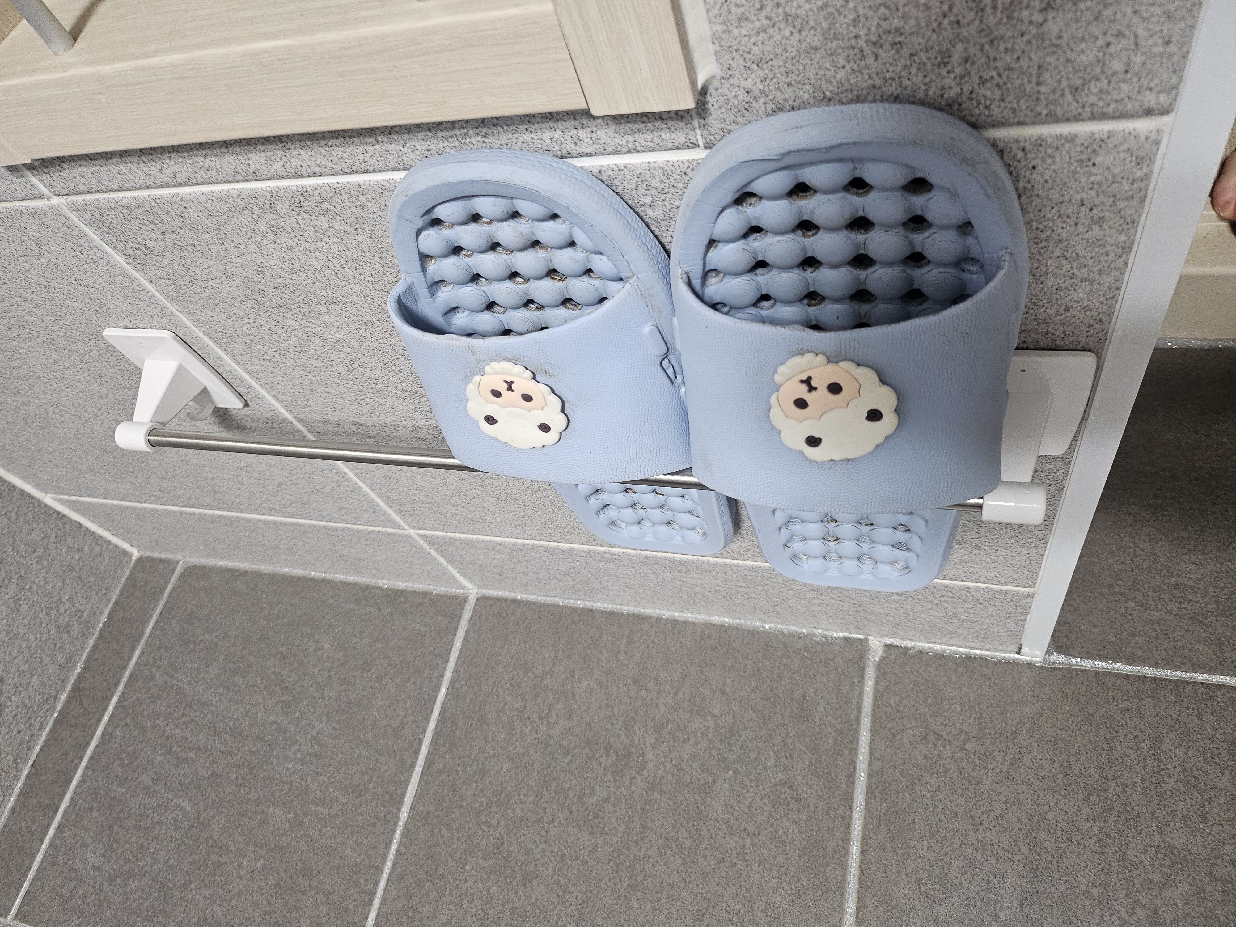빠르게 지나갔는데 대충 수건걸이를 벽에 낮게 붙이고 호텔처럼 슬리퍼를 걸 수있게 만들 수 있다는 것을 알았다.
