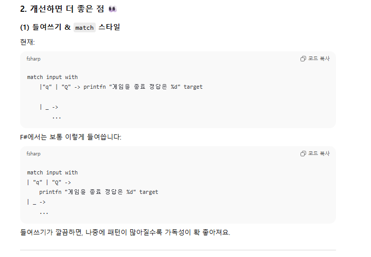 |"q" | "Q" -> printfn "게임을 종료 정답은 %d" target