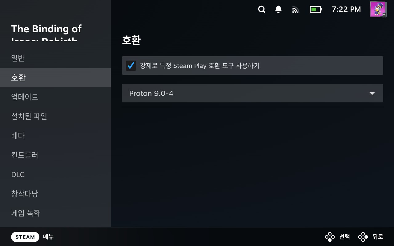 다행히 스팀덱에는 개별 게임에 프로톤 버전을 변경할 수 있었다.