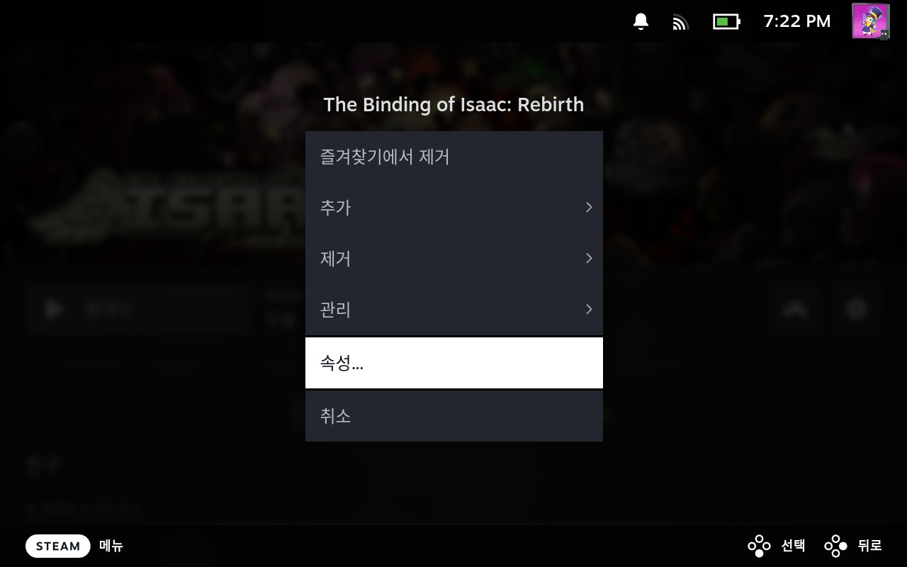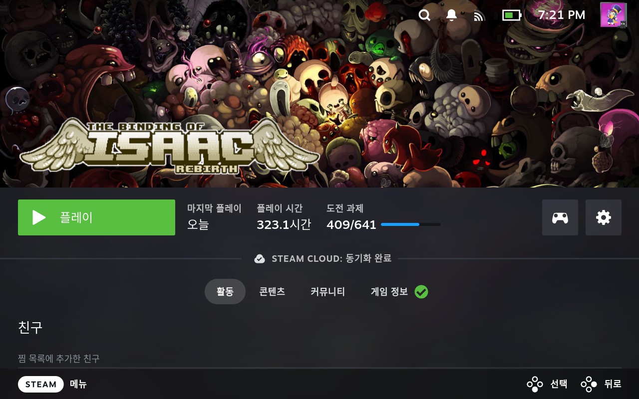 나는 스팀덱을 주로 바인딩 오브 아이작을 플레이할때 사용한다.
