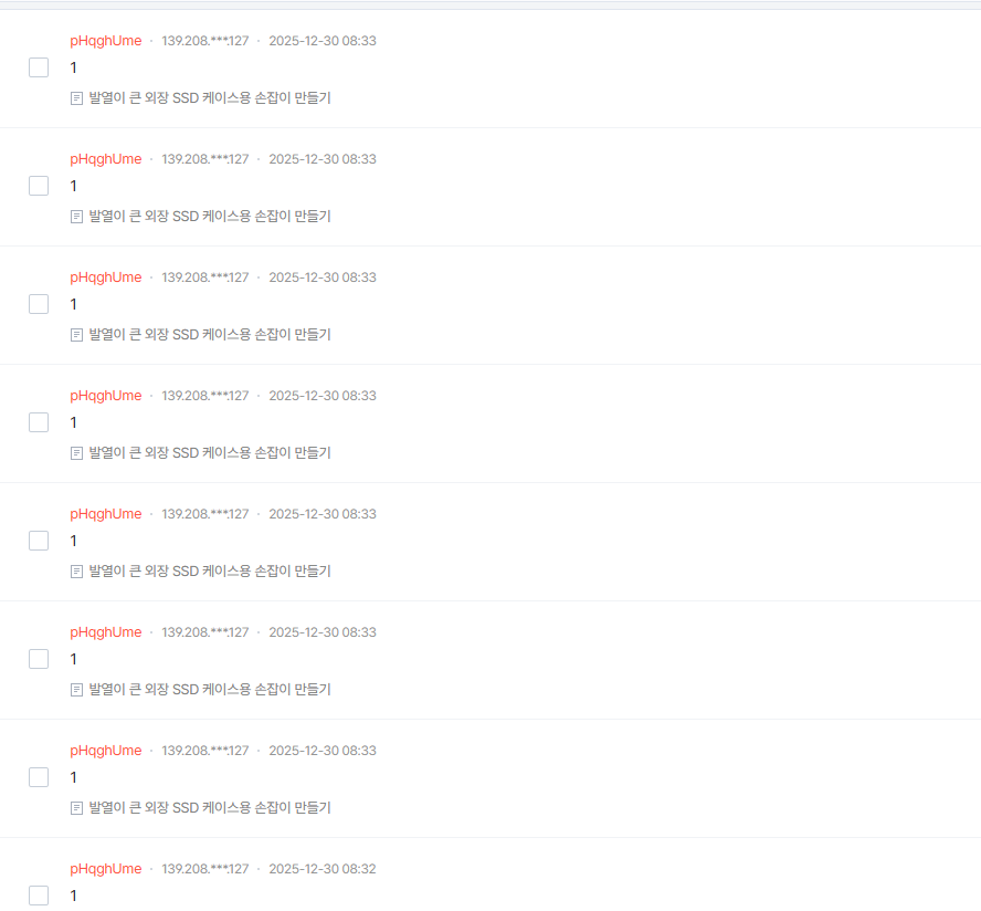 누군가 같은 별명으로 1 또는 알 수 없는 문자를 도배하고 갔다.