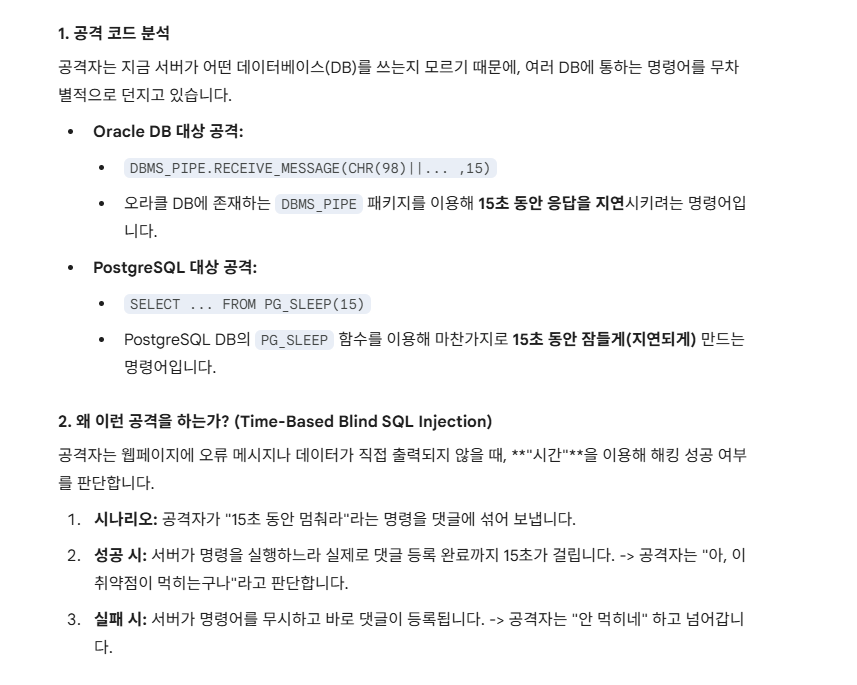 도배 텍스트를 다시 보니.. 이거 SQL Injection을 시도했던 것 같다.