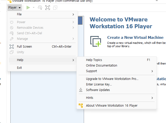 일단 Player > Help > About VMware... 에 들어가 버전을 확인했다.