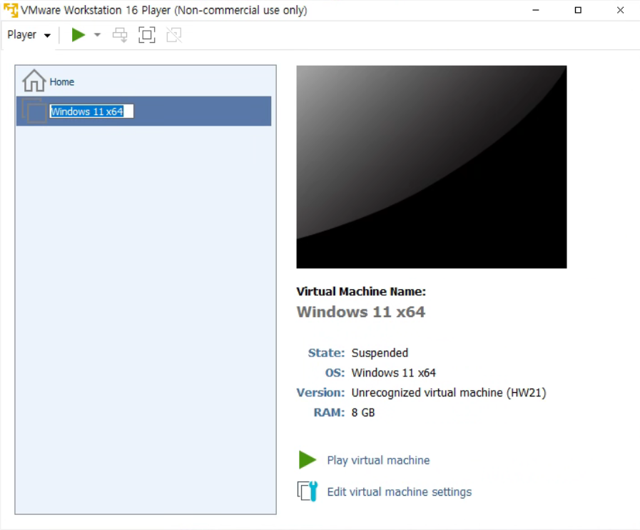 이전 PC에서 VM 워크스테이션으로 윈도우 11 가상머신을 돌렸었다.