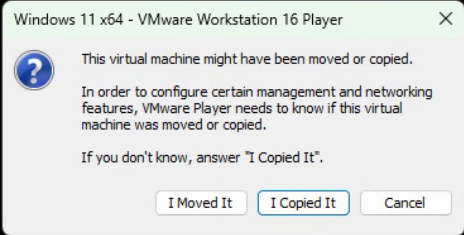 그러면 가상머신의 이동 또는 복사여부를 묻는데 나는 I Copied it을 선택했다.