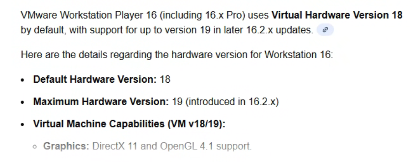 제미나이 피셜 지원하는 가상 하드웨어 버전은 기본값이 18, 최대값이 19라고 한다.