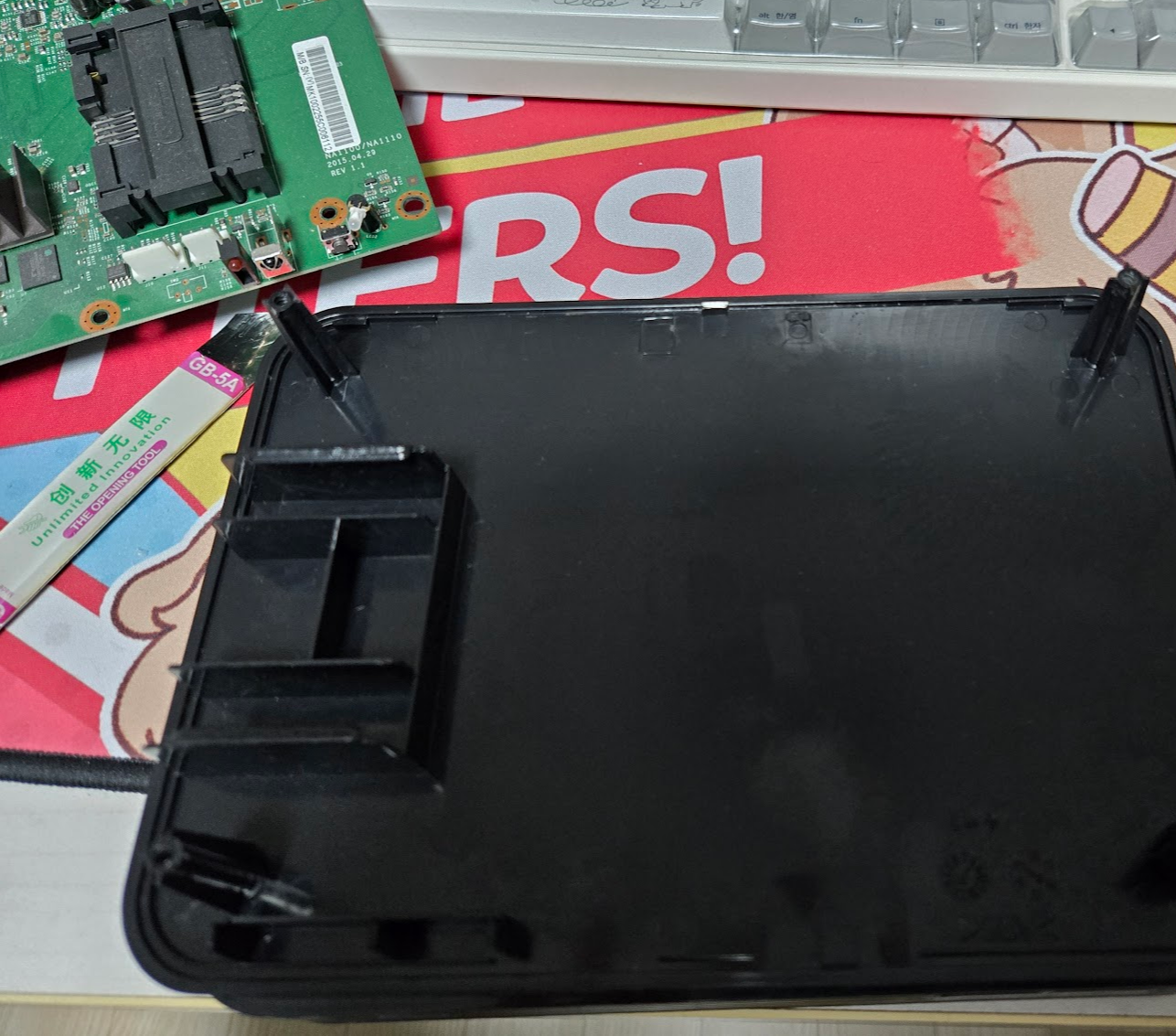 보드에 있는 나사도 모두 풀어주면 나사와 그 아래의 판까지 뺄 수 있다.