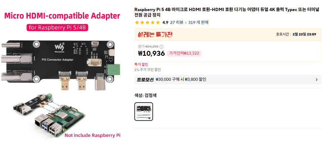 이 보드를 사용하면 라즈베리파이 4b, 5 의 마이크로 HDMI를 쓰지 않아도 된다.