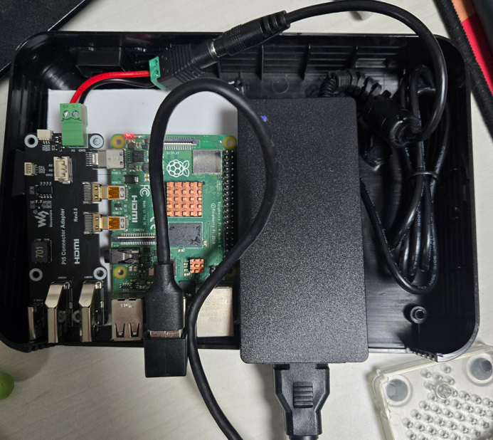 게다가 이제 케이스 내부에 어댑터와 확장한 라즈베리파이만 들어가서 뚜껑이 완전히 닫힌다.