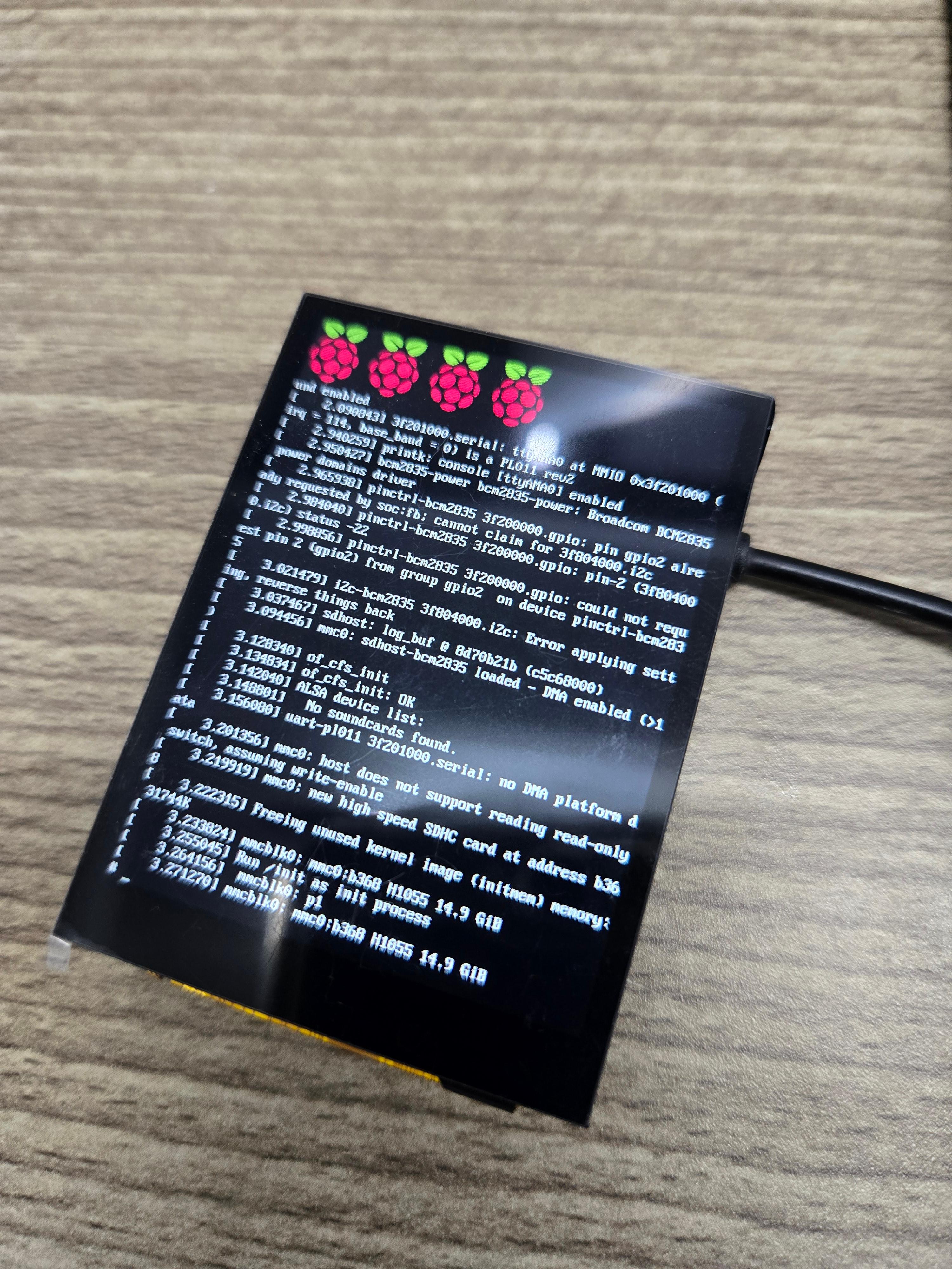 처음 실행하니 라즈베리파이 부팅 콘솔 화면이 나오고
