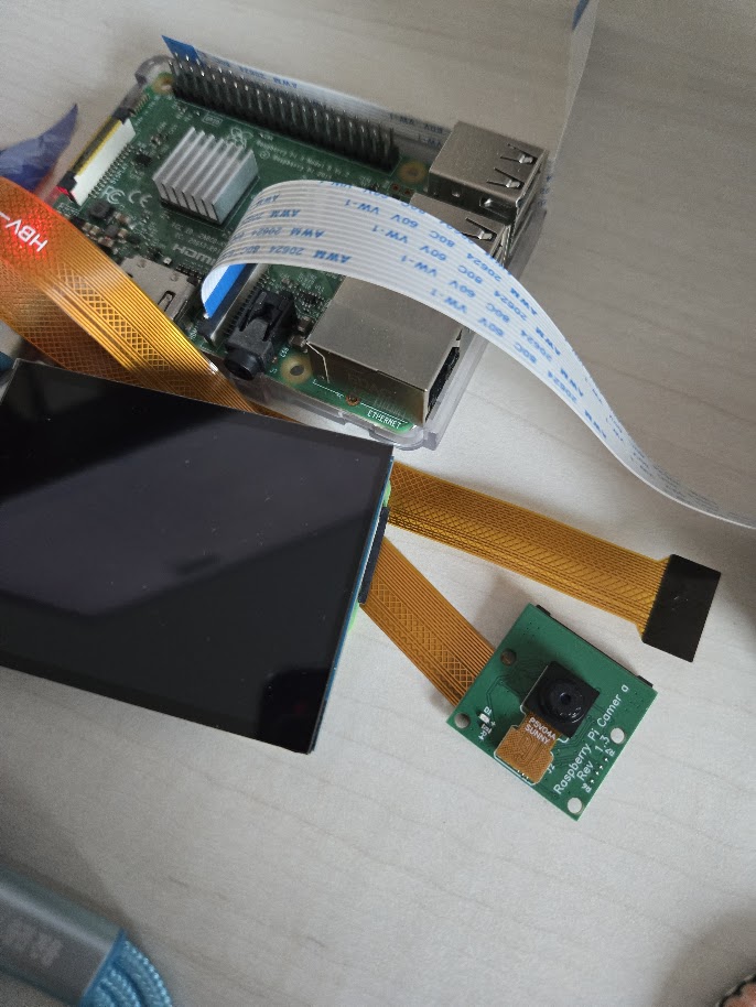 카메라가 문제인가 싶어서 놀고 있는 라즈베리 파이 3B에 연결 후 전원을 넣었더니 그제서야 카메라 보드에 led가 깜빡였다.