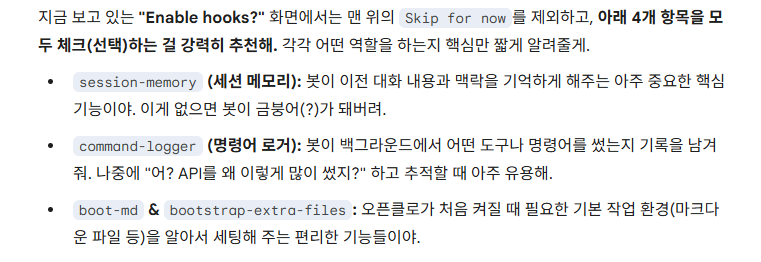 마지막으로 Enable hooks 설정이 뜬다.
