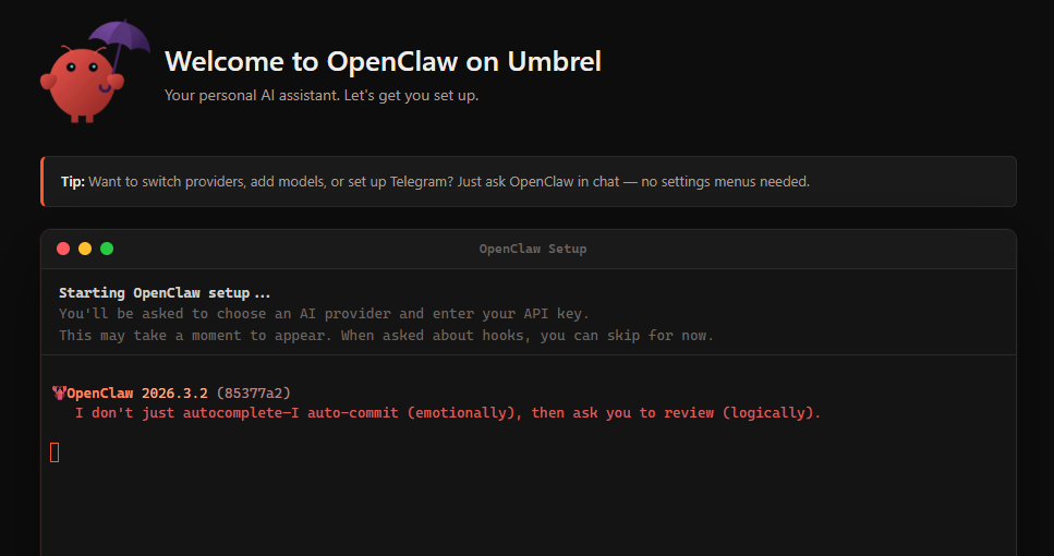 풀노드를 돌리면서 엄브렐 앱스토어를 둘러보다 오픈클로 설치 페이지가 있는것을 발견했다.