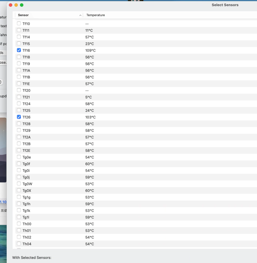 살펴보니 이 프로그램이 찾은 온도 센서들이 많은데 그 중에서 100도가 넘게 표시되는 것들이 있다.