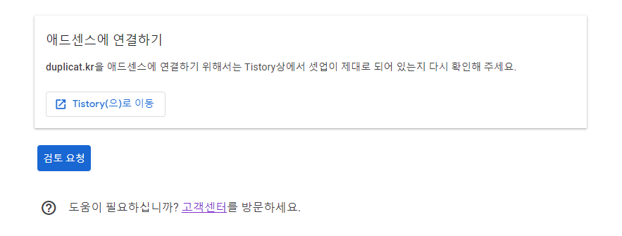 그런데 애드센스 페이지에서 티스토리를 접근하지 못하고 있었다. 혹시 이게 원인일까?