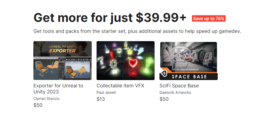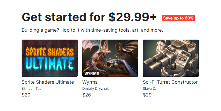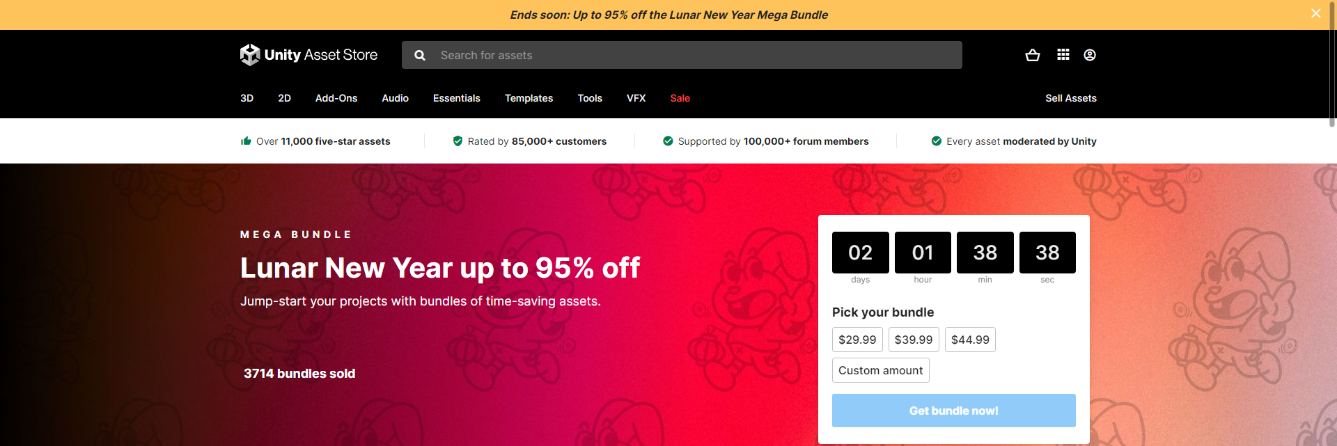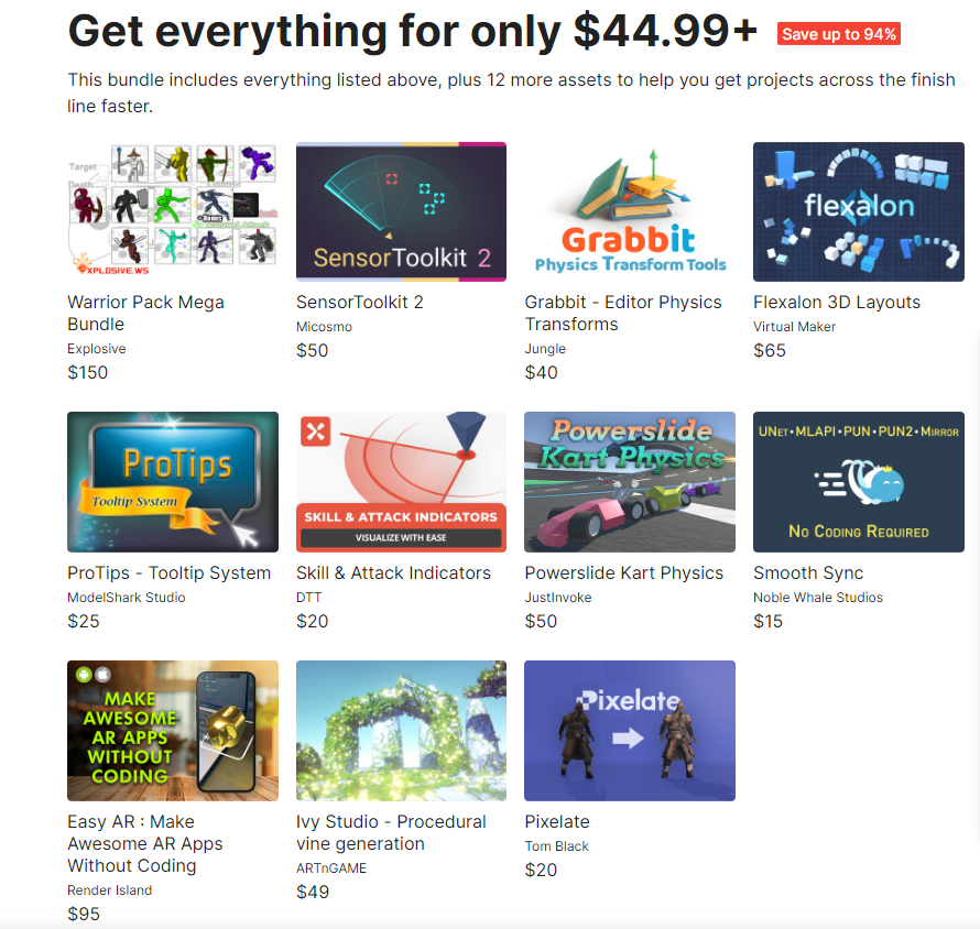 유니티 에셋 스토어에서는 자주 이런 할인 행사들을 많이 했었다.