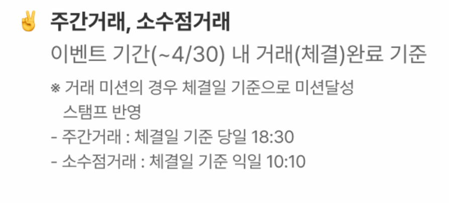 주간거래와 소수점거래는 이벤트 성공이 바로 뜨지 않는다.