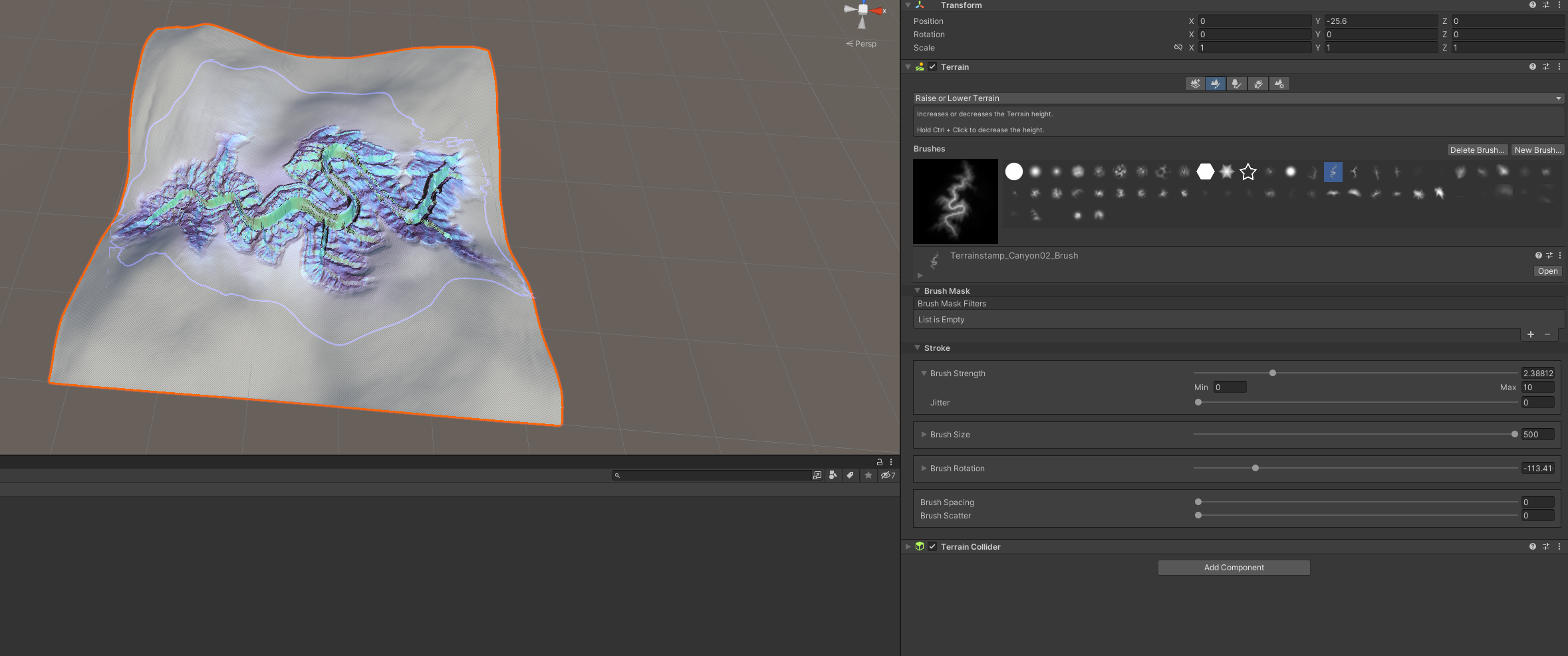 적당히 지형을 만들었으면 브러시로 강줄기 모양을 만들어준다.