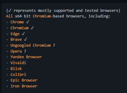 Readme를 보면 크롬과 엣지 말고도 다양한 브라우저를 지원해주고 확장프로그램 경고 말고도 다른 것들도 비활성화 패치가 가능한 것 같다.