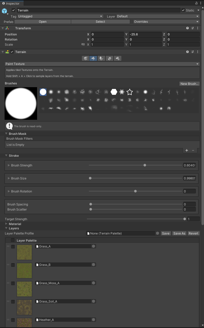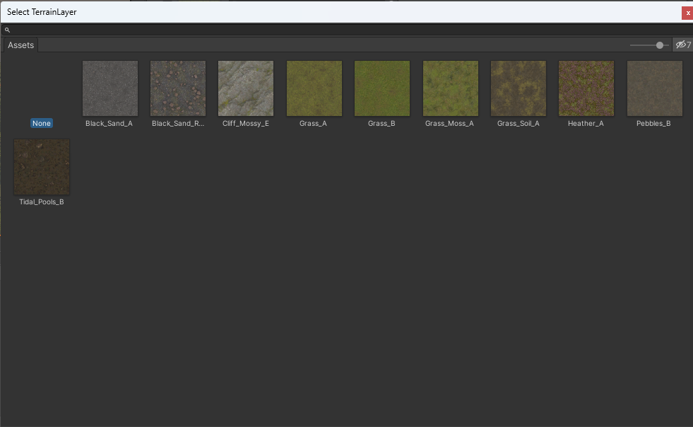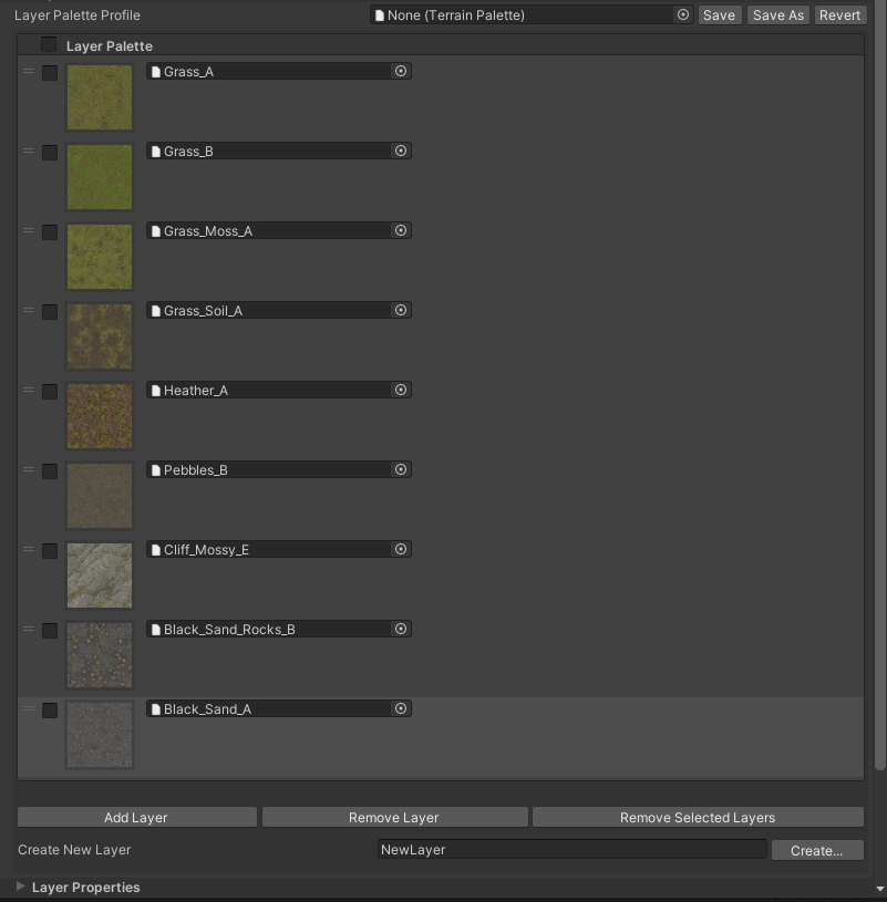 처음에는 Layer가 비어 있으니 Add Layer로 원하는 지형 텍스쳐를 추가한다. 아마 기본으로 제공하는 것들이 있을 것이다.