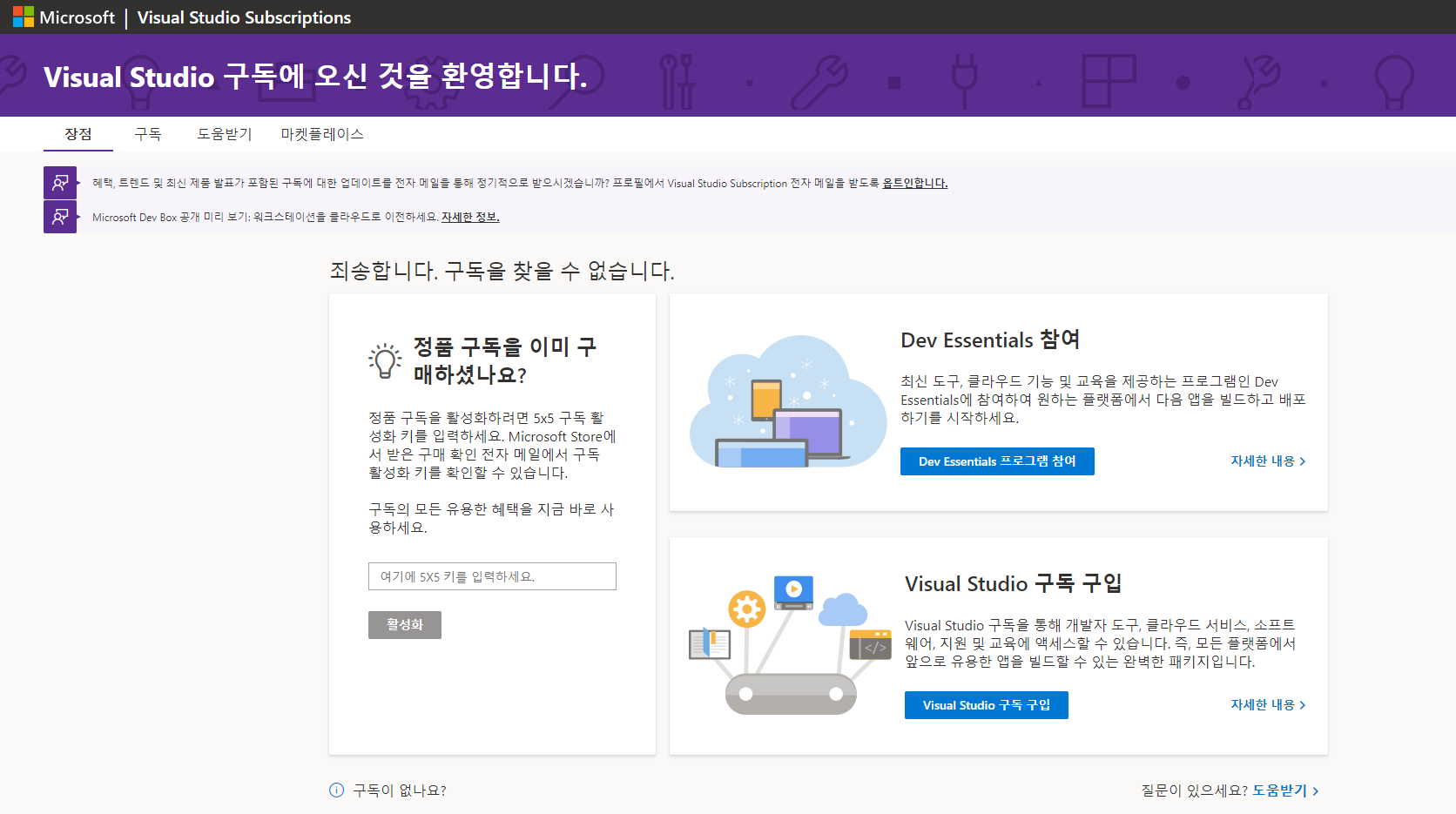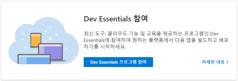 다행히 다른 방법이 있다. 아까 보았던 구독 페이지에서 Dev Essentaials 참여를 누르면 된다.