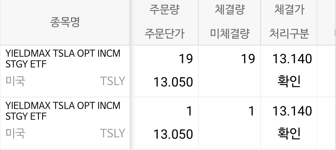 중간에 나무 mts에서 해외 권리 현황을 조회해도 다른 종목들은 앞으로 받을 배당 정보가 나오지만 tsly는 없었다.