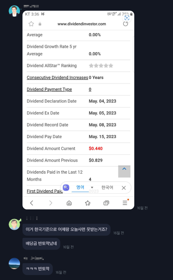 일단 배당락일(Dividend Ex Date)은 당시 5월 5일, 마침 오늘이었다.