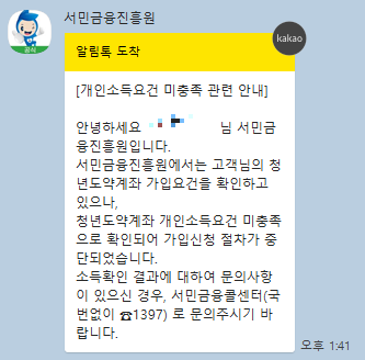 그리고 돌아온 답변은 개인소득요건을 미충족했다는 메시지였다.