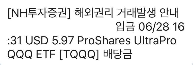TQQQ에서 배당이 들어왔다. 이걸 샀었다는 것을 잠시 잊고 있었다.