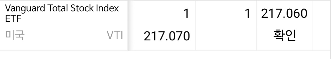 TQQQ에서 받은 배당금은 추가로 환전한 돈과 함께 VTI 한 주를 사는 대 사용했다.
