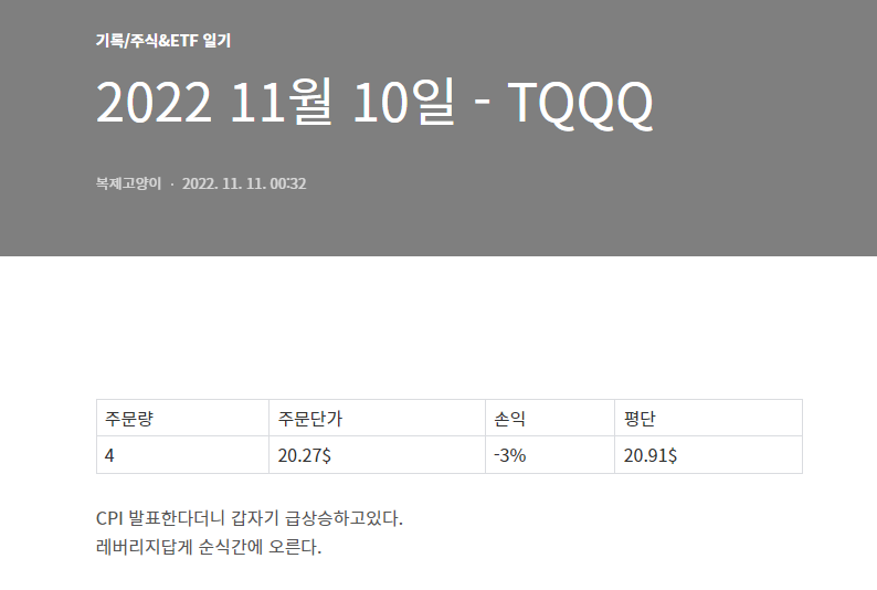 이 블로그에 작성했던 마지막 매수 기록이 작년 11월 11일이다.