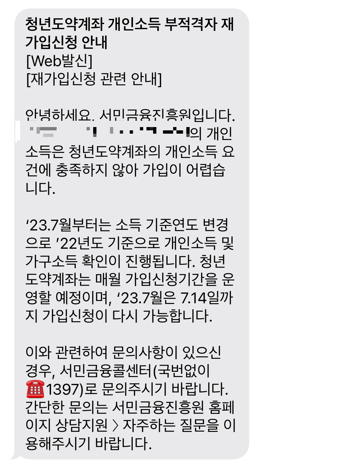 저번 6월에 신청했었던 도약계좌 심사 결과는 불합격이었다.