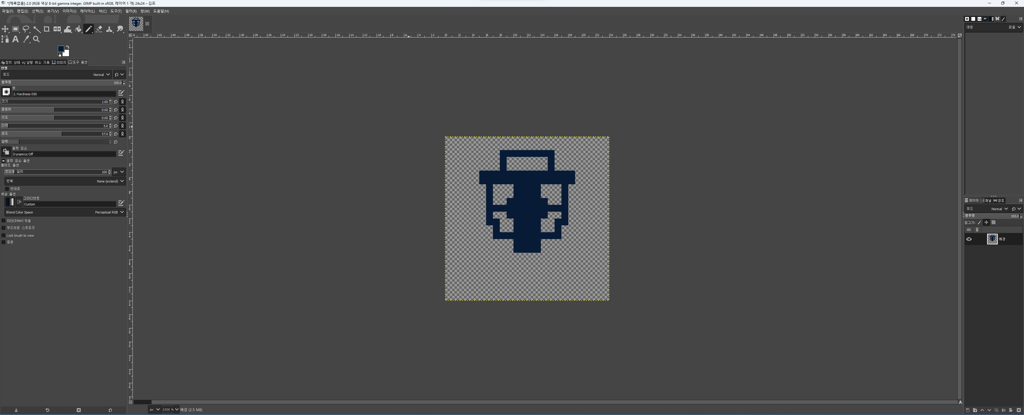 투명한 배경은 잠겨있는 상태라 아이콘이 선택한 전경색으로 채워졌다.