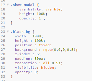 해답은 .css에서 show-modal을 black-bg의 아래에 두는 것이었다.