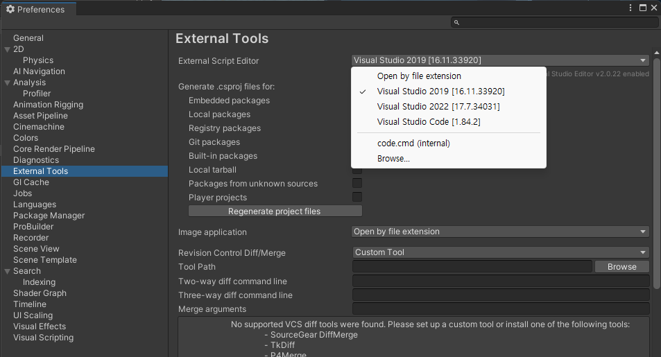 원래는 유니티의 Edit > Prefernces > External Tools에서 올바른 에디터를 선택하면 해결되는데 그것도 소용없었다.