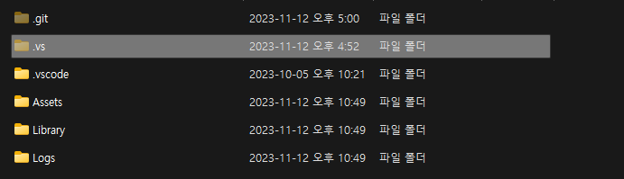 혹시나 싶어 직접 유니티 프로젝트로 가서 .vs를 삭제하고 다시 vs를 실행했더니
