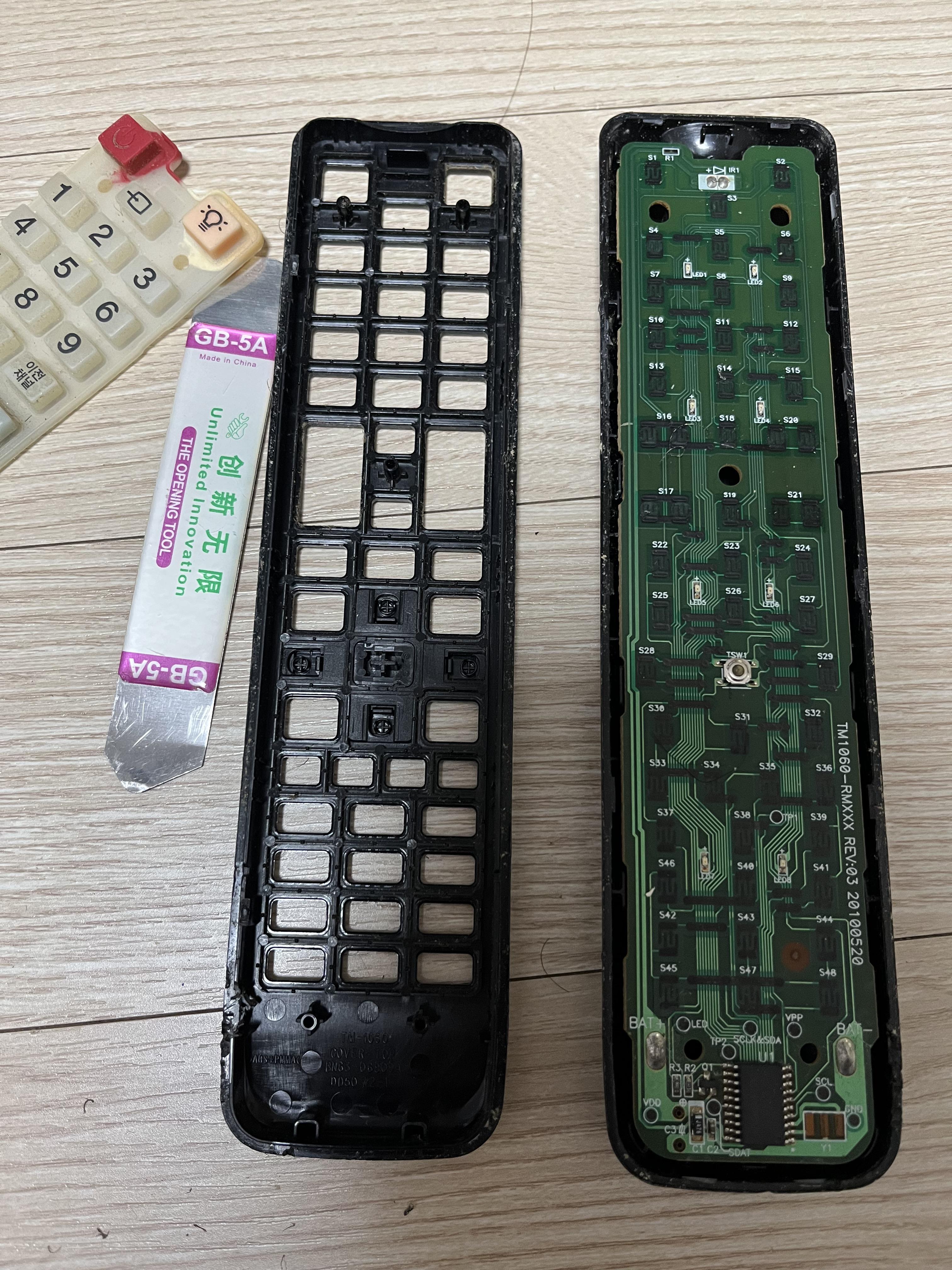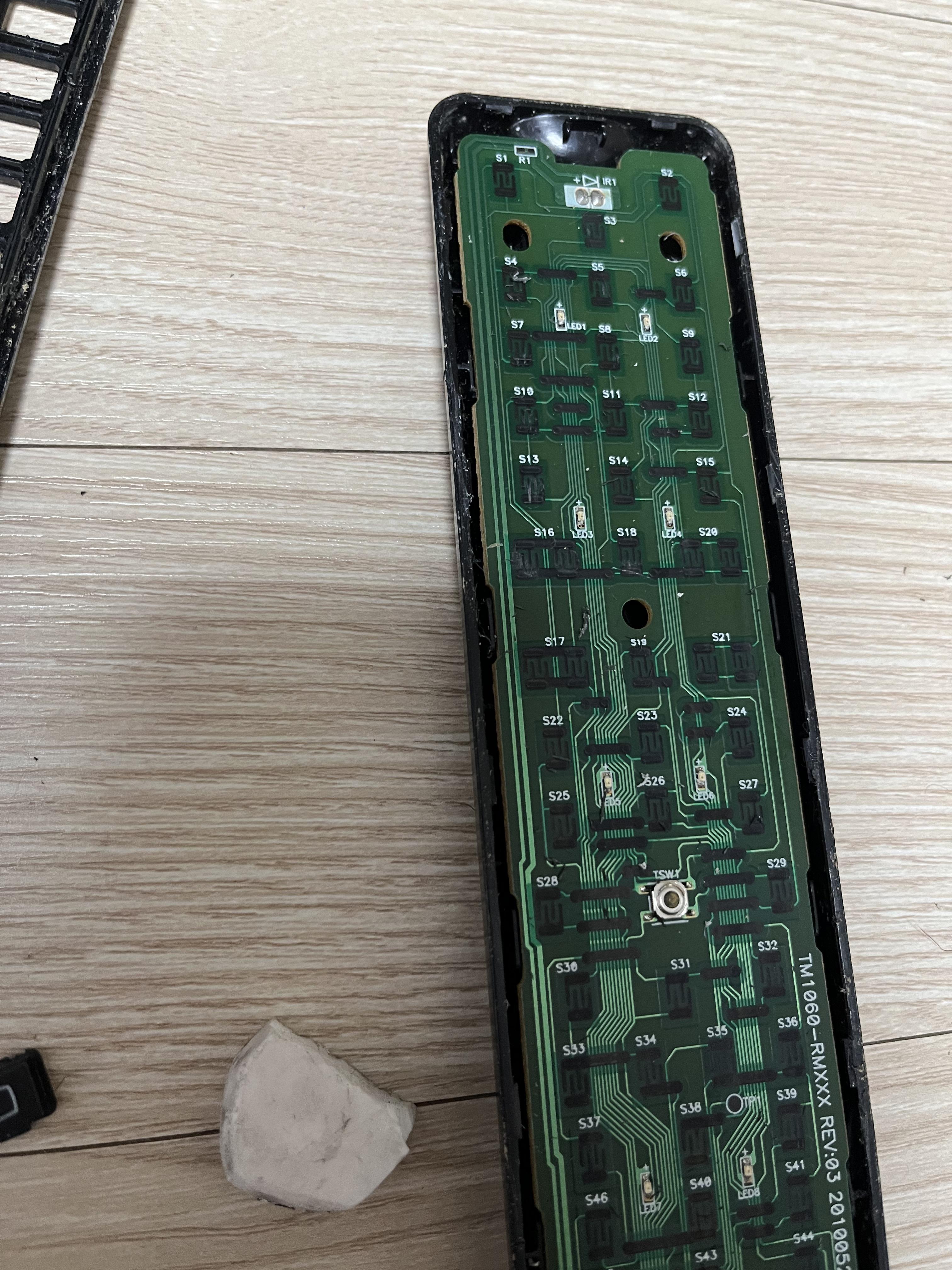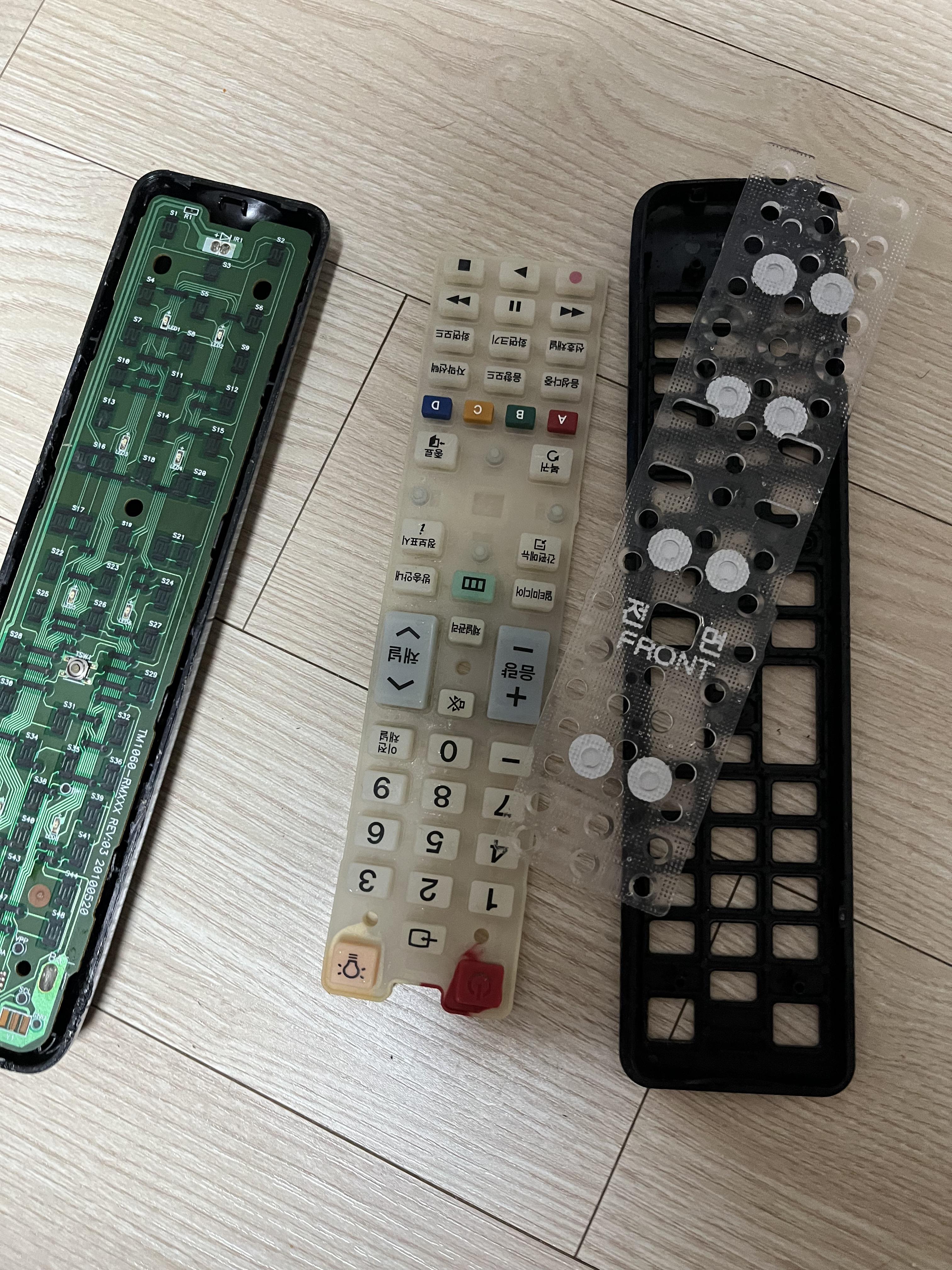 우선 리모콘을 분해했다. 많이 오래되었는지 먼지들이 많이 떨어졌다.