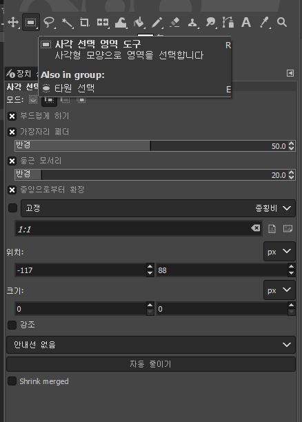 - 중앙으로부터 확장은 상황에 따라 체크, 해제하면서 사용하면 된다.