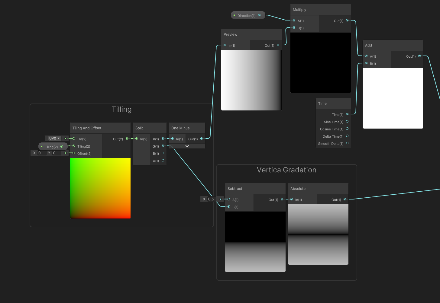 위와 같이 같은 쉐이더그래프를 사용하지만 화살표의 방향이 달라야 할 때, 머티리얼의 속성을 바꾸면 모두 바뀌어버린다.