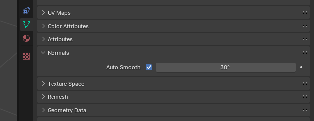 이럴때는 우측의 역삼각형 아이콘(Data)에서 Normals의 Auto Smooth를 체크하면 된다.