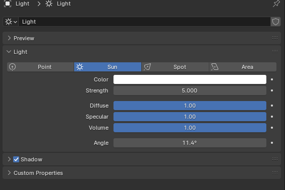 태양 라이트 각도를 바꿔도 저기서 고정이었다.