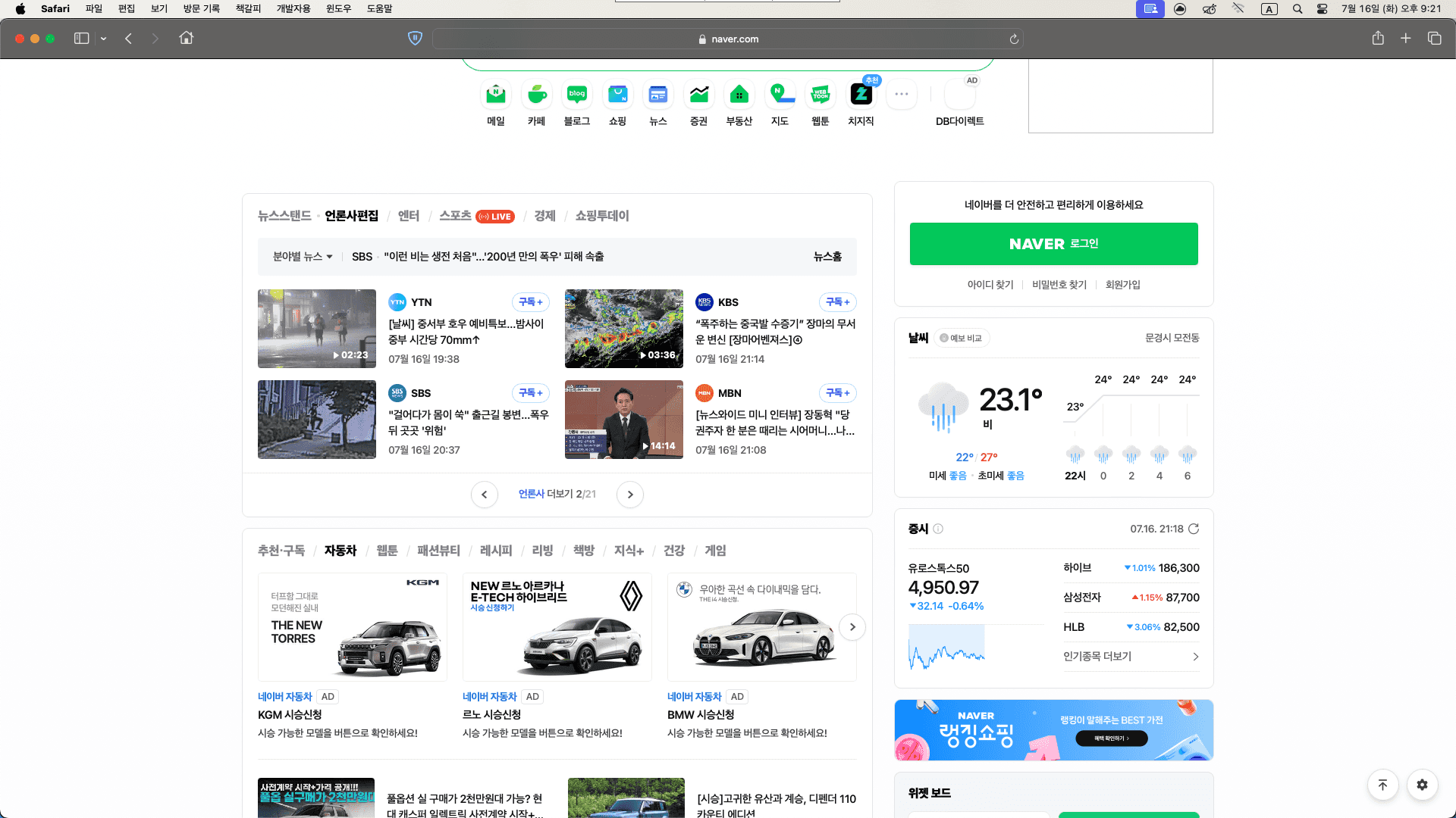 별 생각없이 맥에서 사파리를 켜고 스크롤을 내리는데 생각보다 스크롤이 잘 되지 않았다.