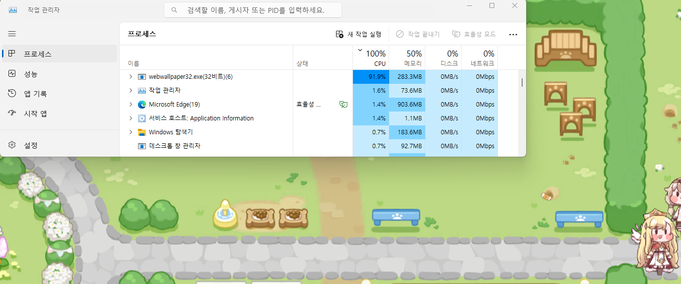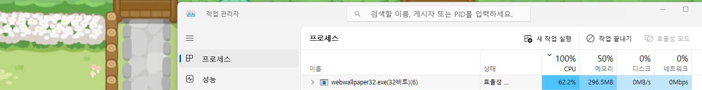작업하는 pc가 n100 cpu라 그런지 배경화면을 돌리면 가끔 끊기고 힘겨워 하는것이 보였다.