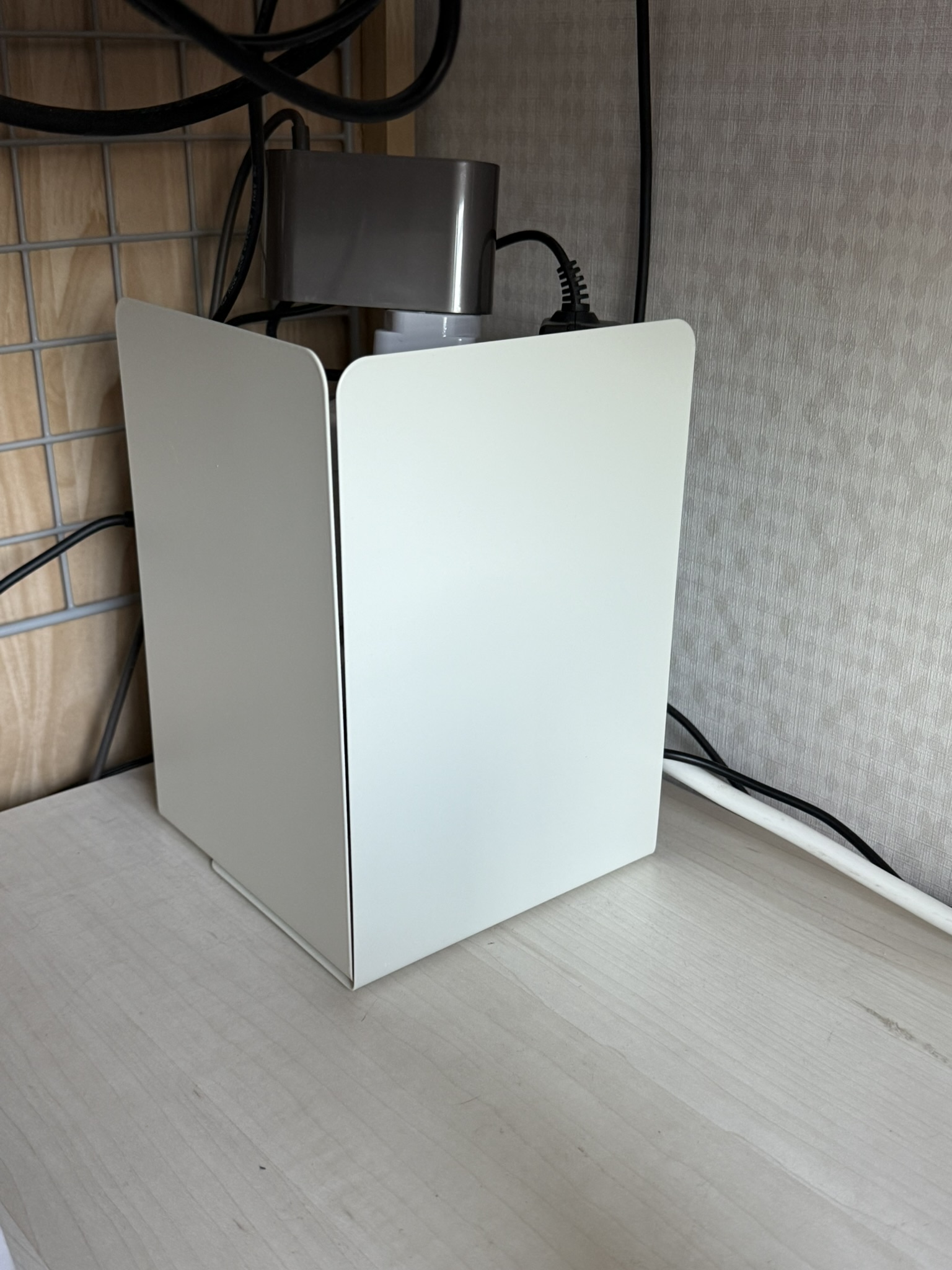 적당히 ㄱ자로 모양을 잡고 그 위에 콘센트를 올리니 생각보다 깔끔한 느낌이 든다.