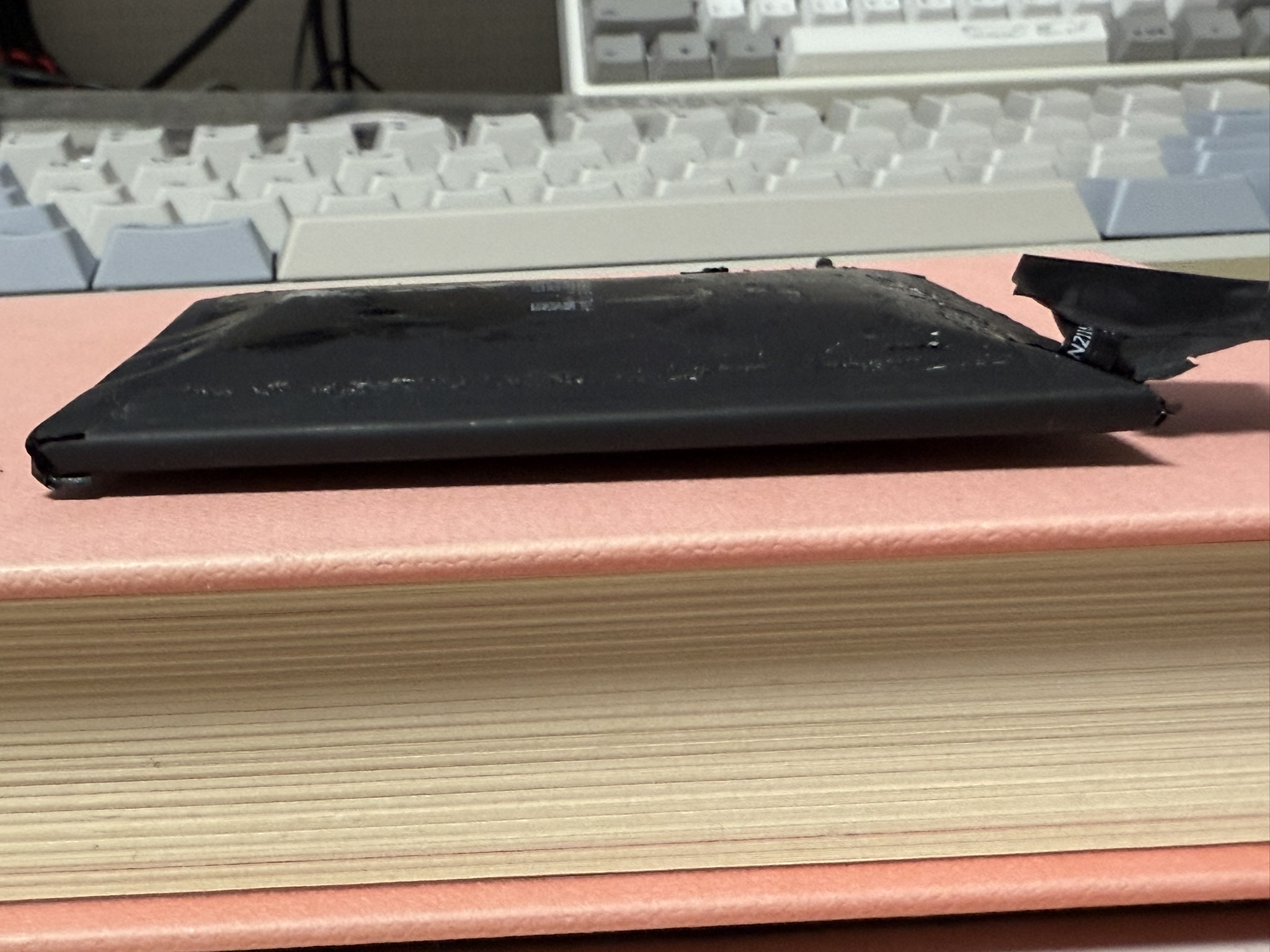 본드도 끈적하게 달라붙어있고 부풀어버린 배터리 껍데기가 불안정하게 주변 판을 누르고 있기 때문이다.